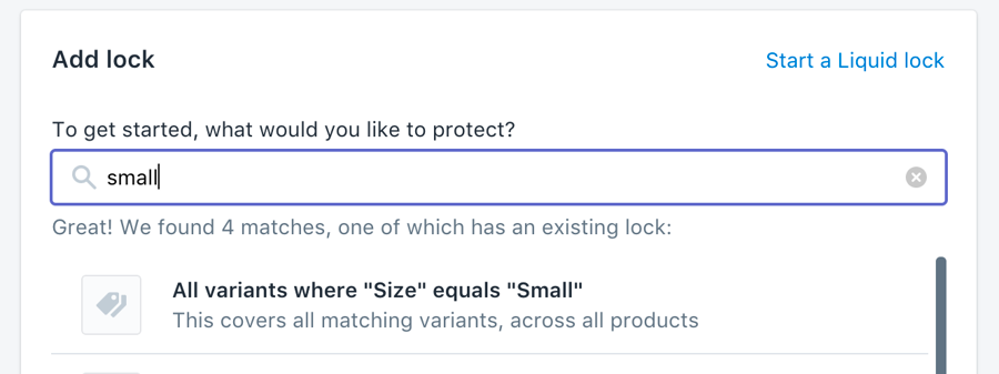 In addition to managing access to your products and collections, Locksmith can protect individual variants within your product listings.