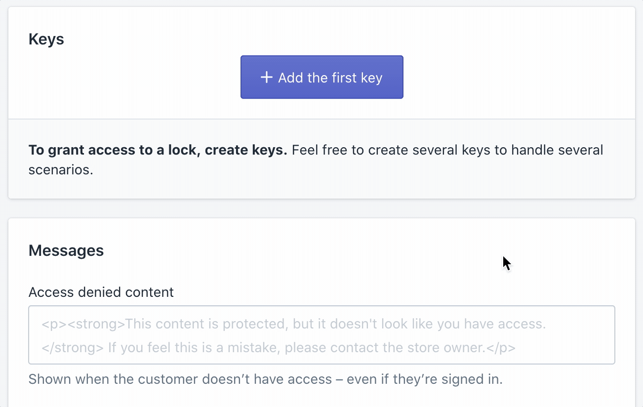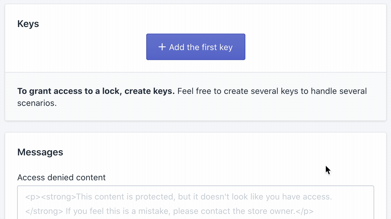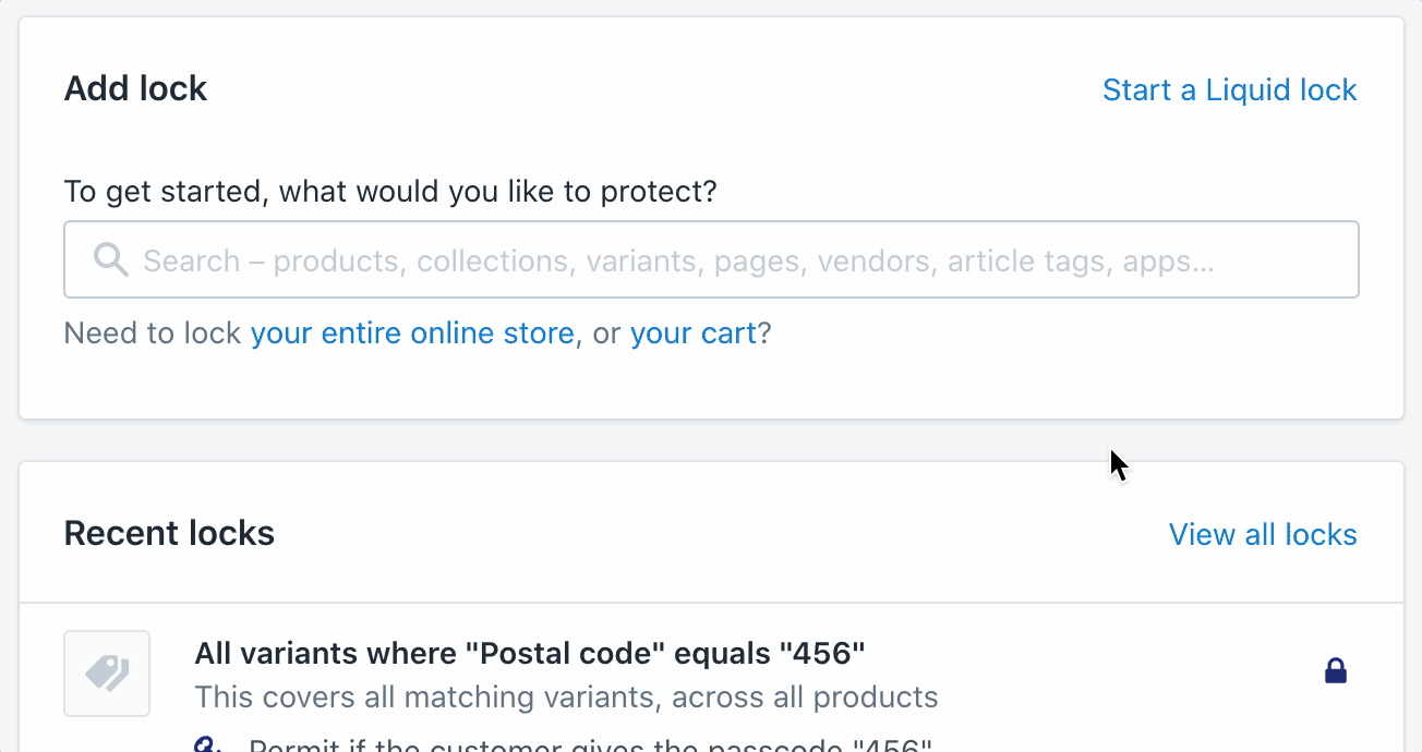 Back on the home screen of Locksmith, use the "Add lock" form to create a lock that covers the entire online store.