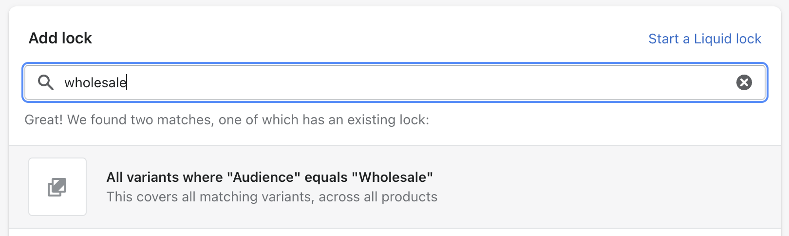 Next, use Locksmith to create a lock on your wholesale collection. This lock will cover all of the products in that collection.